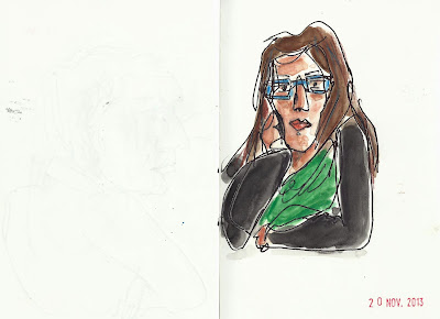 No último sábado de 2012 fiz um desenho (ver AQUI) neste mesmo sítio, uma esplanada em frente do mosteiro de Alcobaça. Estava frio e um sol esplendoroso, tal como no passado sábado, também o último de 2013, onde provavelmente fiz um dos últimos desenhos do ano. Separam estes dois desenhos 365 dias e algumas centenas de desenhos. Estou seguro de que desenhar cada vez mais dá mesmo resultado...