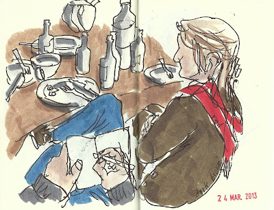 Participei pela primeira vez na sessão de desenho CRU, Arte e performance, no bar CRU no Príncipe Real. Foi um serão de desenho formidável. Num primeiro momento ouvimos o Andrew Clarence, um norte-americano que vive em Portugal há muito tempo, e faz parte da orquestra da Gulbenkian. Tocava viola de arco, uma espécie de violino mas de maior dimensão.