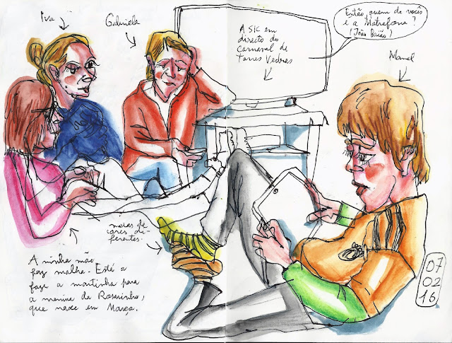 Mas como os tempos são outros, levámos também novas tecnologias, uns, e cadernos de desenho outros, que me apeteceu registar este momento para que o recordem daqui por trinta anos...