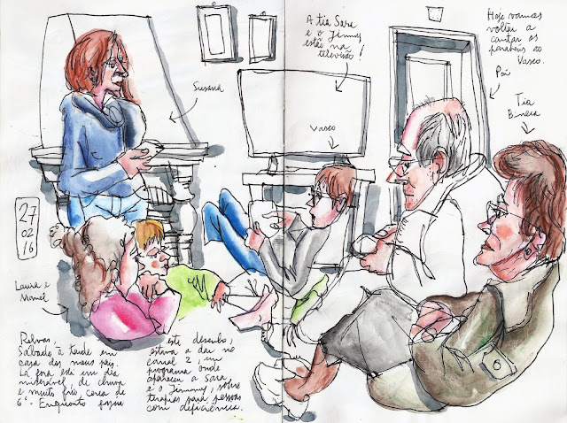 Enquanto desenhava, o meu cunhado fazia qualquer coisa no telemóvel, metido quase dentro da lareira. A pequenada jogava à vez num "ai-páde", e a minha mãe fazia uma mantinha de malha para um bebé que vai nascer. Naquele instante, e olhando para a televisão, tive saudades da minha pistola de fulminantes...